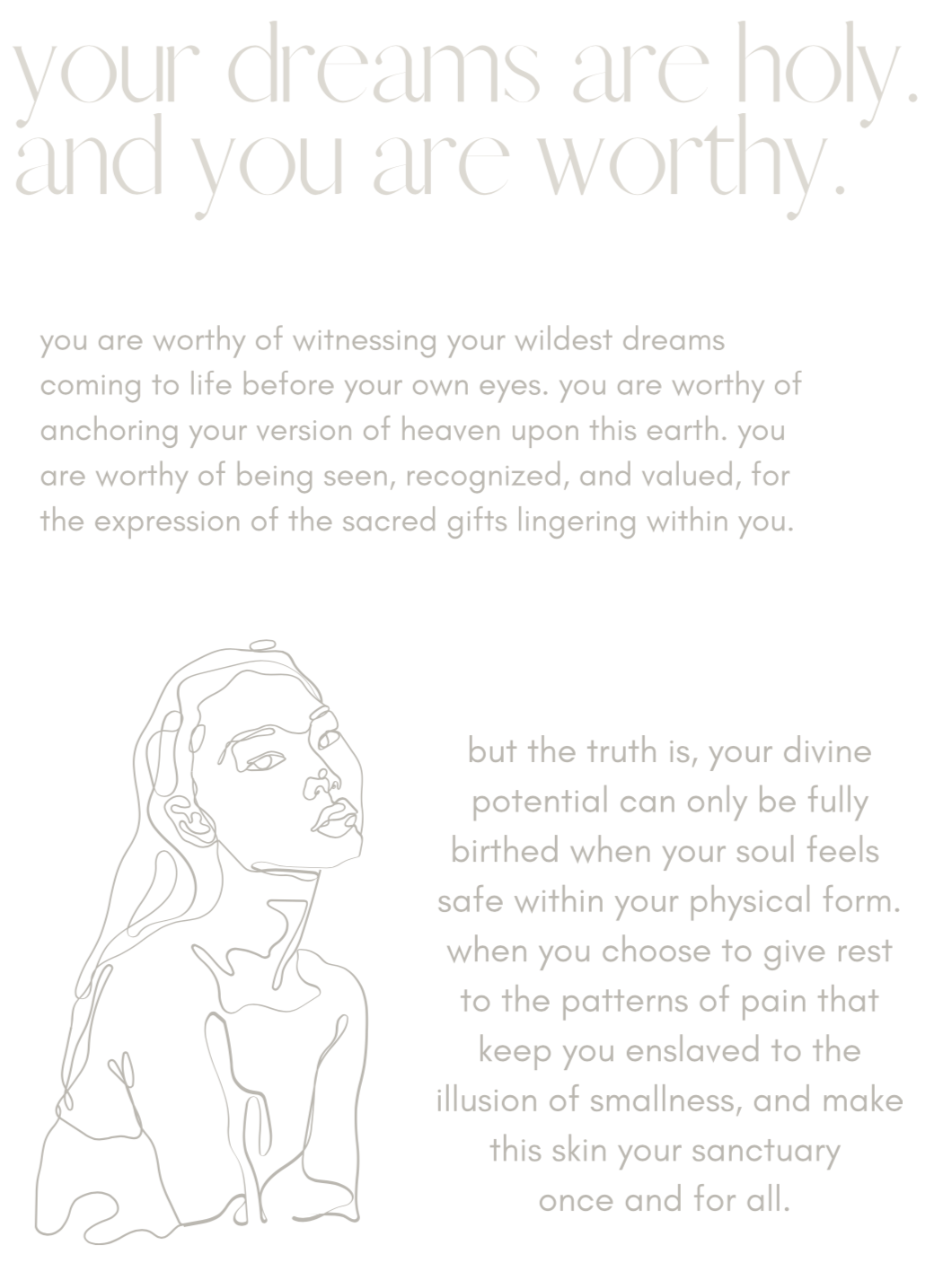 it's about restoring the remembrance of your eternal worth, so that you will know how deserving you are of feeling completely at peace within every cell of your being, and treat your body in a way that reflects your divine nature in all moments.